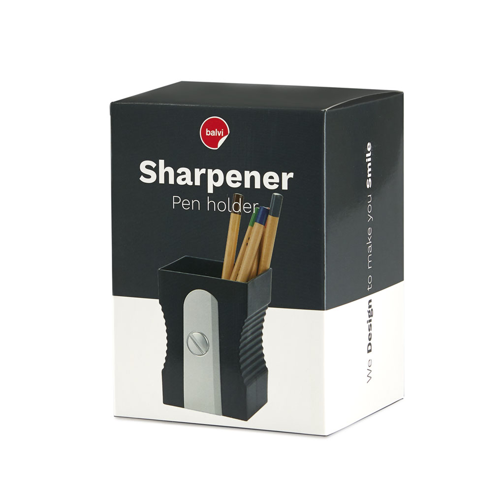 Porta penne a forma di temperamatite, colore nero. Originale e divertente, per tenere in ordine la scrivania con un tocco di design. Dimensioni: 11,5×8,5×7,4 cm Materiale: plastica ABS/PP – Designer: Oscar Torrent