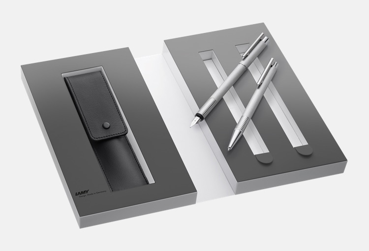 Lamy – il brand tedesco sempre più amato dai giovani, propone set di scrittura contenenti la coppia penna a sfera e portamine oppure penna a sfera e stilografica, pratici e dalle linee moderne.